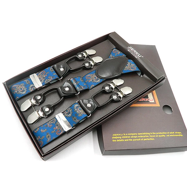 125CM Men's Fashion Suspenders Adjustable Strappy Y-Back, Business Print High Elastic Suspenders with 6 Clips