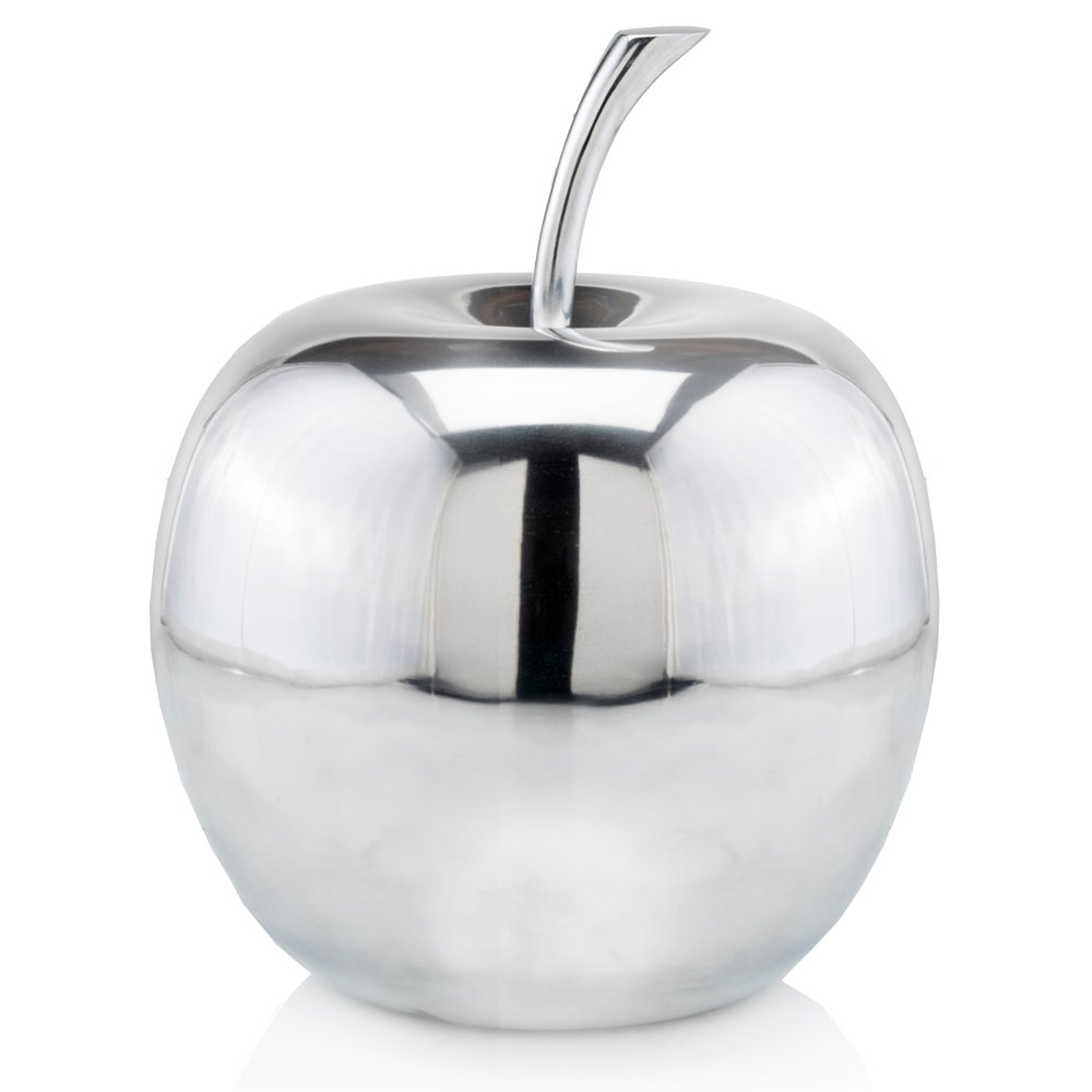 This decorative apple sculpture exudes modern sophistication with its sleek design crafted from high grade buffed aluminum, adding a touch of contemporary elegance to any space. Handcrafted by skilled artisans, the cast aluminum is welded together then buffed to create this smooth and shiny polished finish. This decorative apple is a great piece to create captivating decor or for gift. 13-inch H x 12-inch W x 12-inch D
