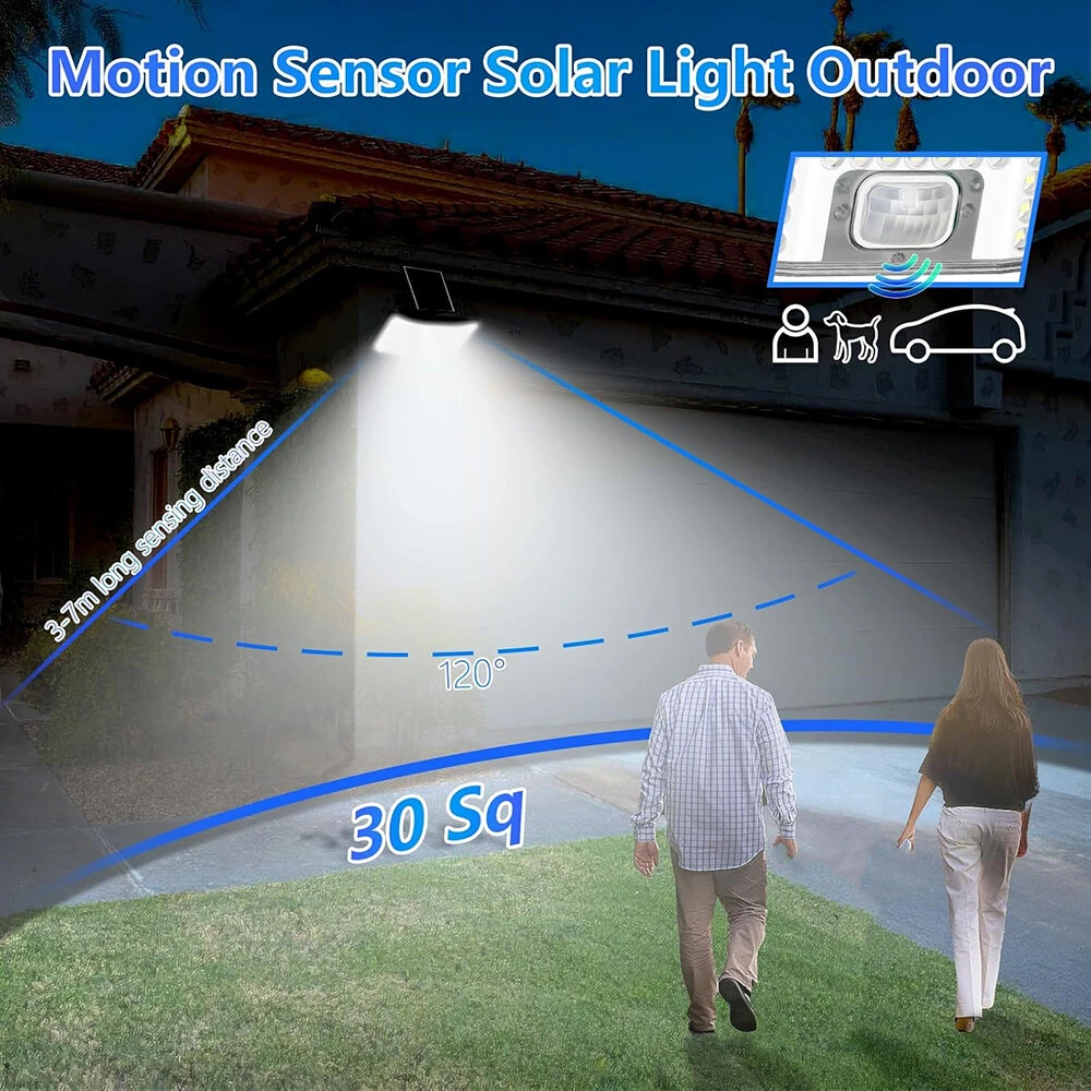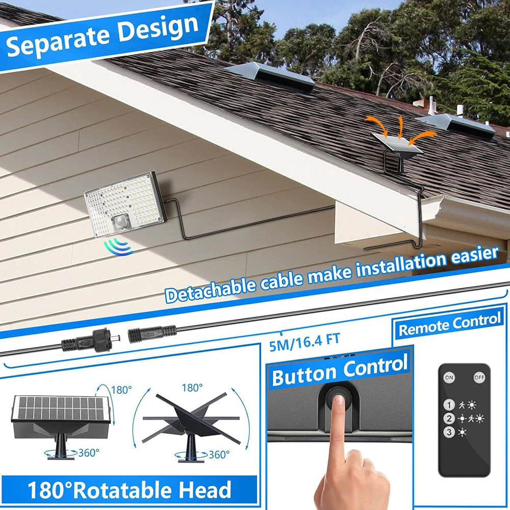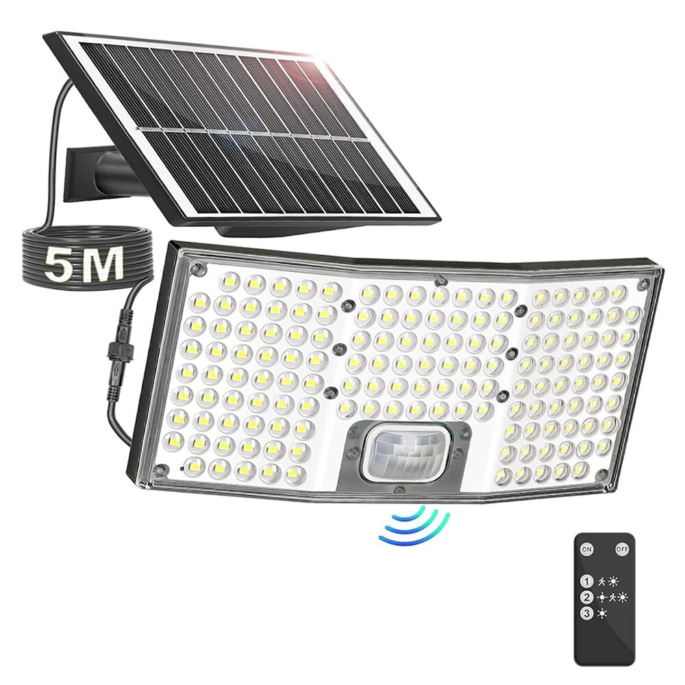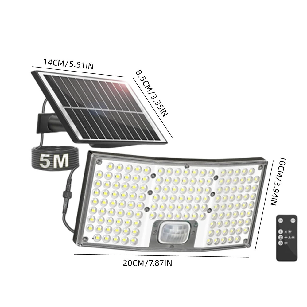 146LED Solar Flood Light with Motion Sensor Split Design 3 Modes Outdoor Security Lighting IP65 Waterproof Remote Control
