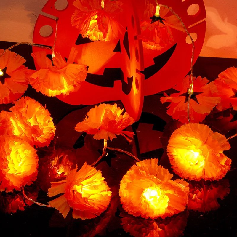 150cm Marigold Garland for Decoration Lighted Day of The Dead Dia De Los Muertos Indian Diwali Altar Halloween Home Party Decor