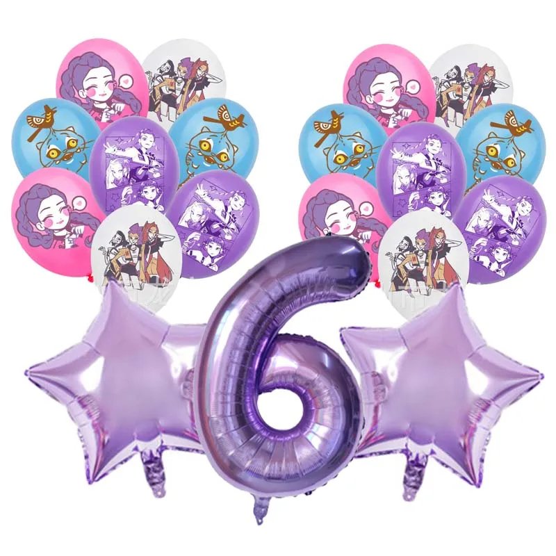 19pcs Kpop Demon Hunters Birthday Balloon Decoration Set Music Girl Number Aluminum Ballons Kids Party Supplies Gift Favor Decor