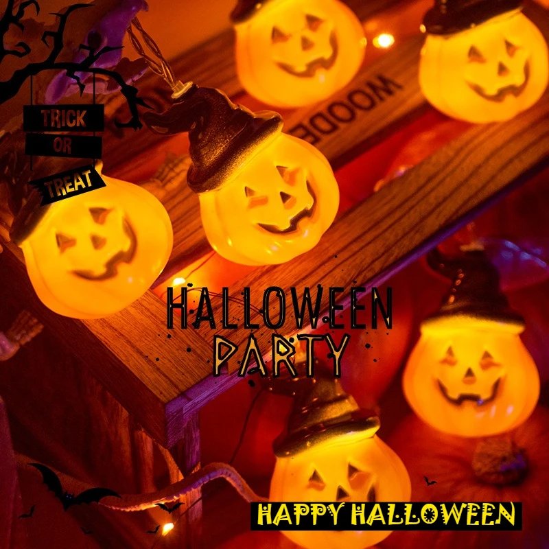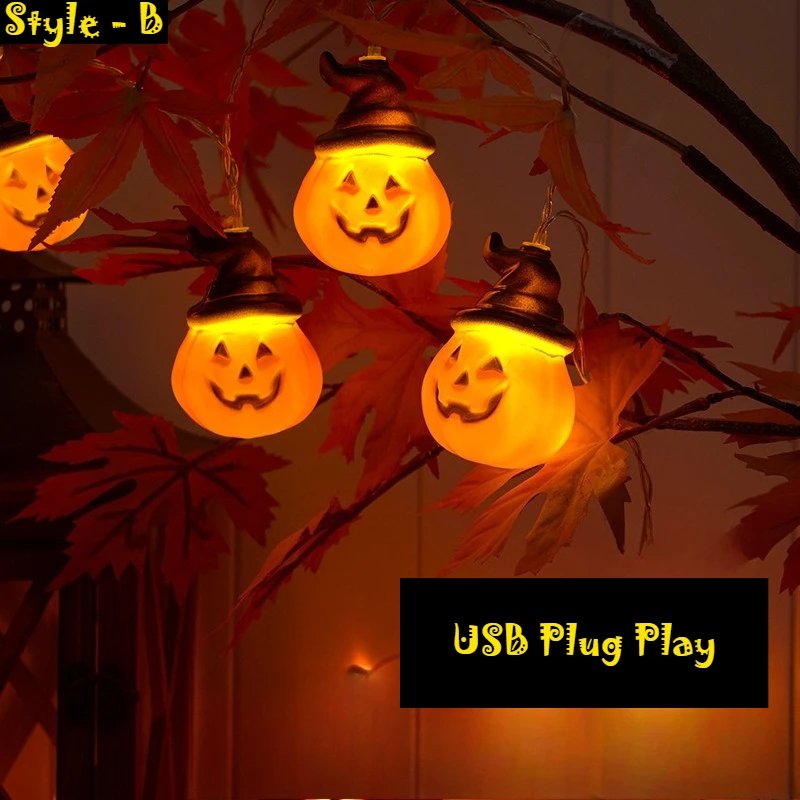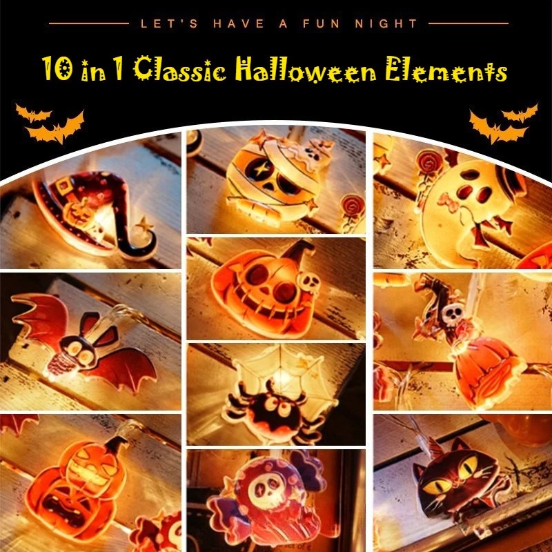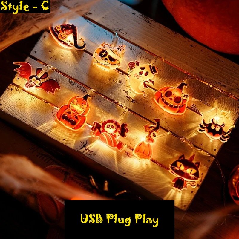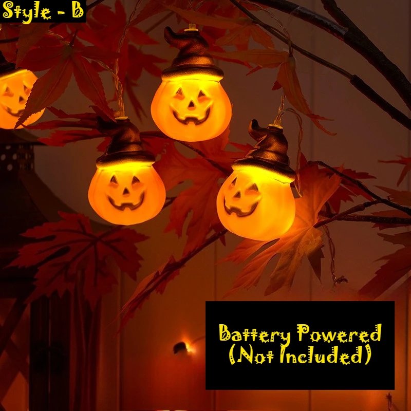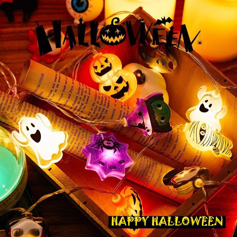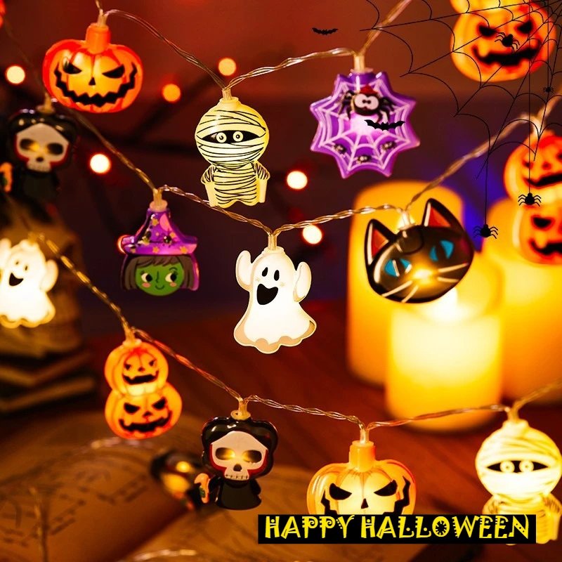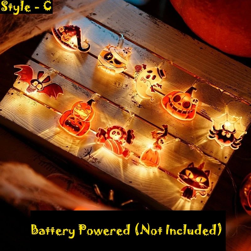 1Set – 3style Halloween 40LEDs Battery Powered String Lights With Ghost Witch Cat Pumpkin Spider Web Skeleton Mummy Party Decor