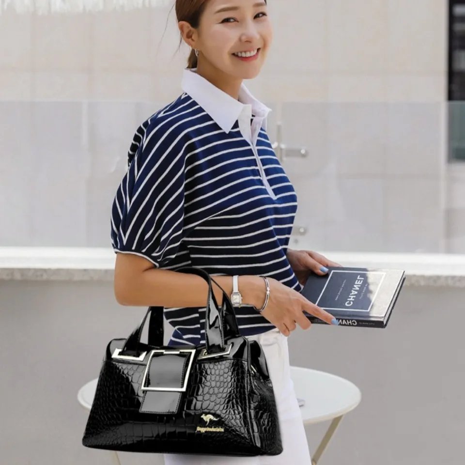 2 layer Large Capacity Tote Bag Luxury Handbags Women Bags Designer Crocodile Pattern Ladies Boston Shoulder Bag High Quality