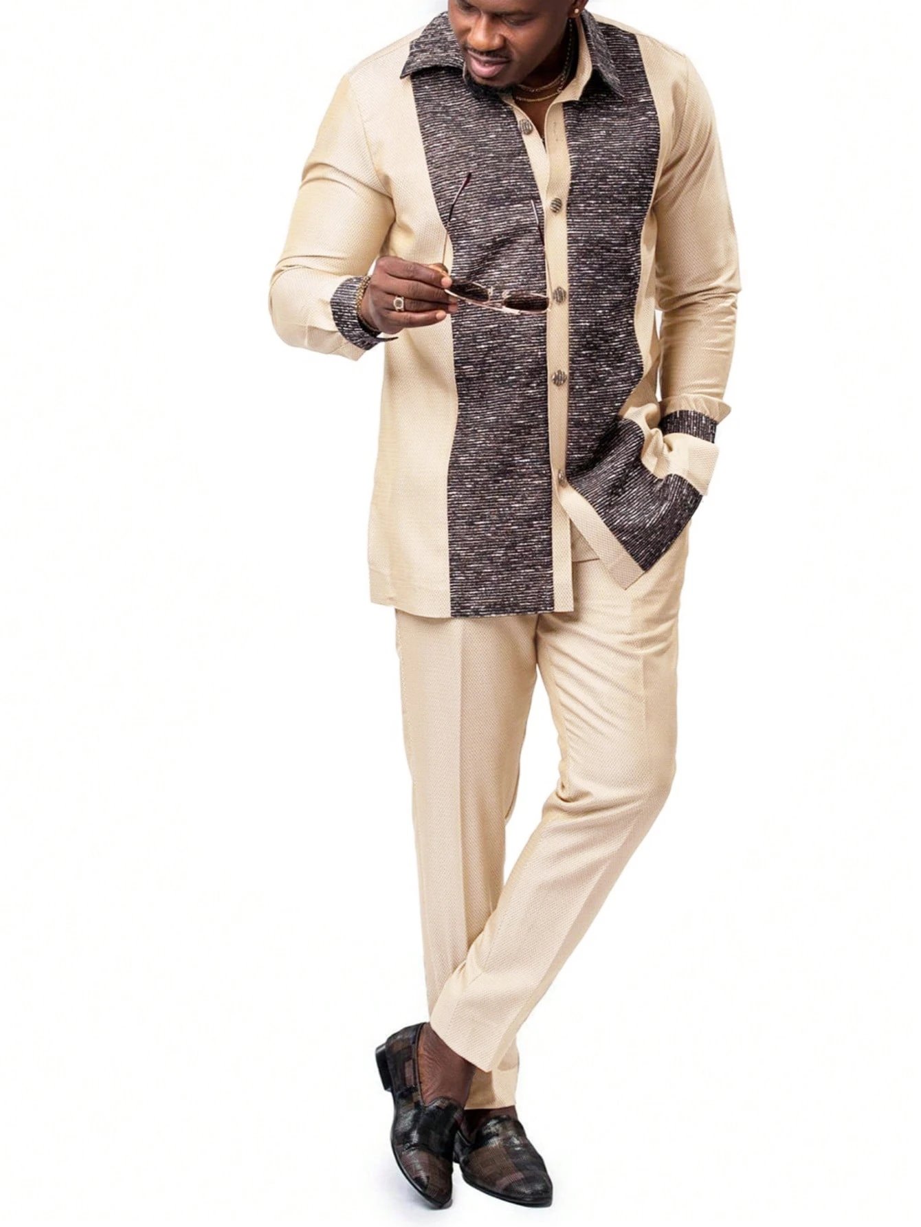 2024 New In Kaftan African Style Suits for Men 2 Piece Set Embroidered Shirts and Pants Traditional Luxury Suits for Men