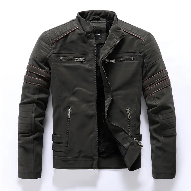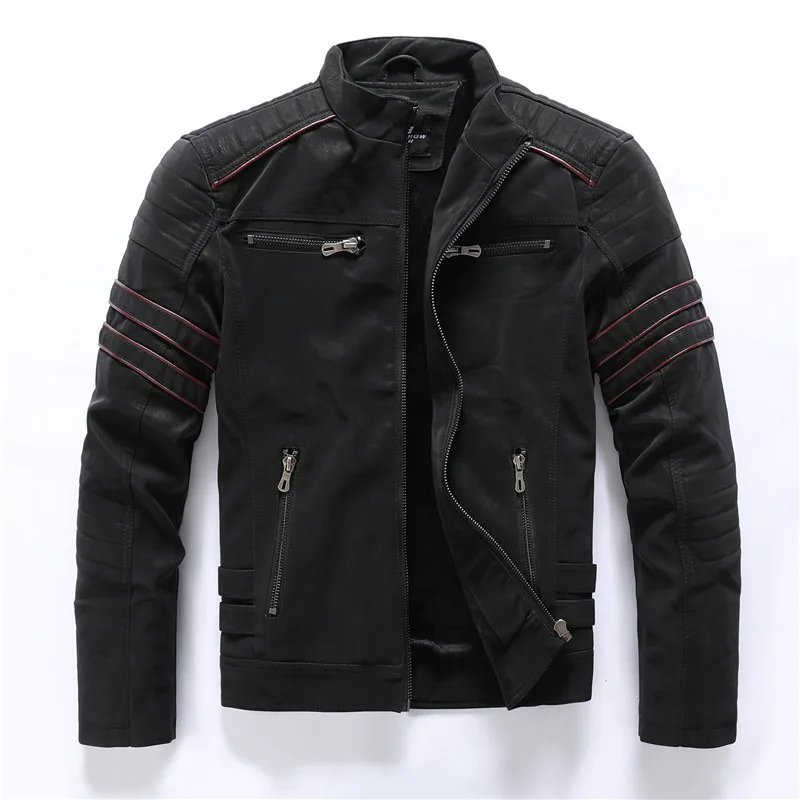 2024 New Men's Leather Washed Leather Jacket Motorcycle Plus Fleece Splicing European and American Men's Leather Coat