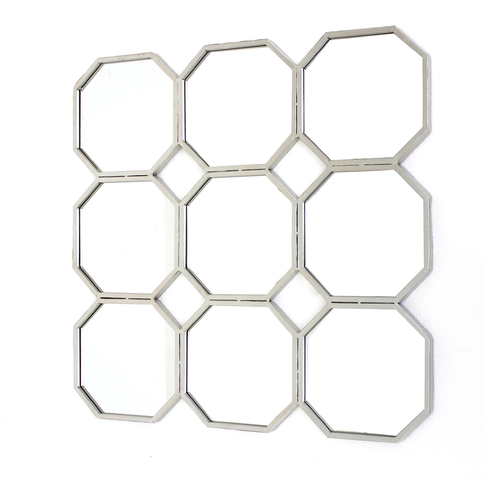 this is wall art taken to the highest pedestal of elegance, creativity and style. our inspirational mirrored metal wall sculpture is perfectly designed with a contemporary touch to create an elegant visual effect that resonates. it features nine individual octagonal mirrors with stunning, contemporary geometric pattern that inspires awe and amazement. give your living space that industrial inspired styling that will creatively transform the decor into a more cozy and peaceful ambience. – contemporary collection – metal frame – silver finish – 9 individual – octagonal mirrors – welding craft