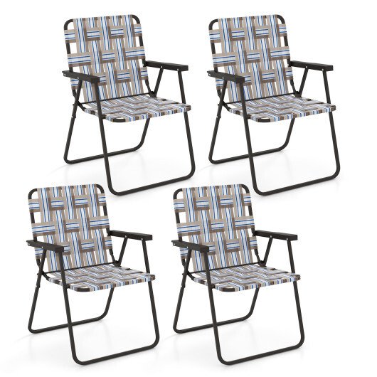 4 Pieces Folding Beach Chair Camping Lawn Webbing Chair-Coffee – Color: Coffee