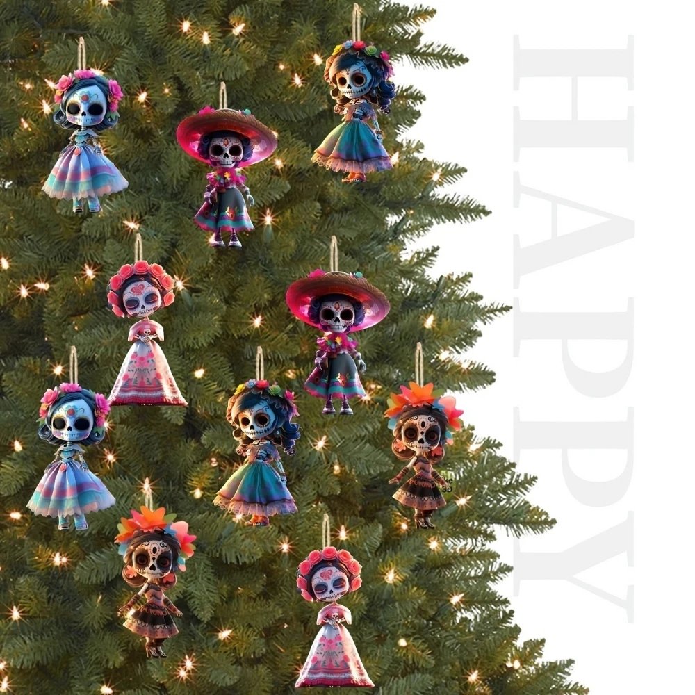 5-20Pcs Mini Acrylic Cartoon Girl Hanging Decoration for Halloween Day of The Dead Prank Horror Party Bar Home DIY Decoration