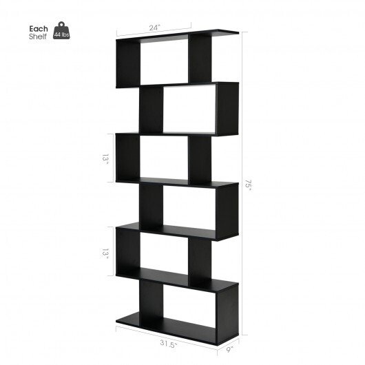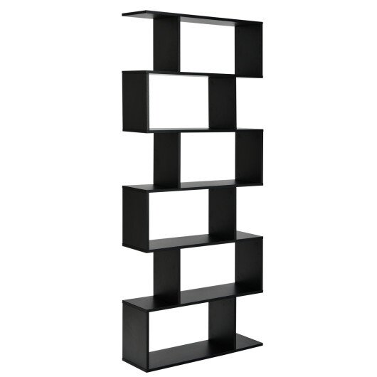 6 Tier S-Shaped Bookshelf Storage Display Bookcase Decor Z-Shelf -Black – Color: Black