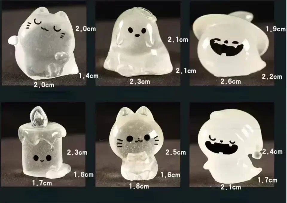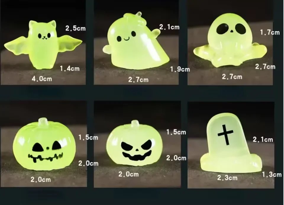 6PCs Luminous Micro Miniature Halloween Pumpkin Ghost Bat Skull Glowing Action Figure DIY Gift Festival Home Haunted Party Decor