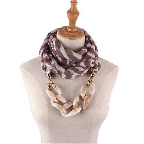 Acrylic Chain Decorated High Fashion Cotton Women Scarf Necklace – Brown