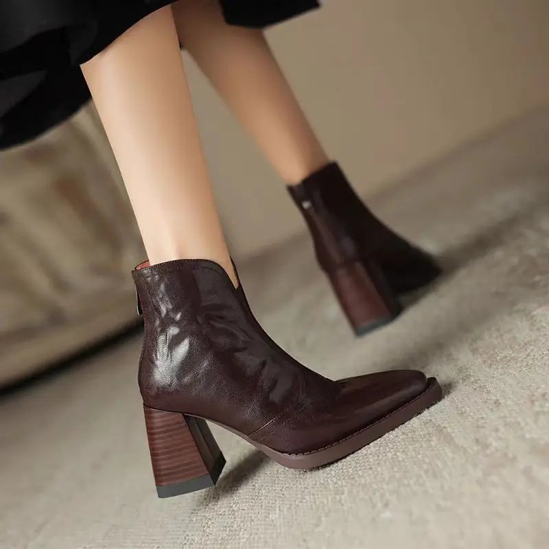 Aphixta Luxury Leather Women Ankle Boots Plush Warm Zipper Close Modern Boots High Heels Shoes Woman Boats botines para mujeres