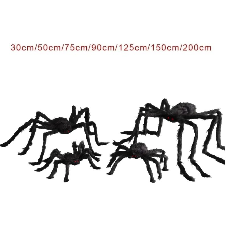Araña de peluche grande para Halloween, decoración de Halloween, accesorio de fiesta, decoración de araña gigante al aire libre, broma de cámara de 30-200cm, araña negra