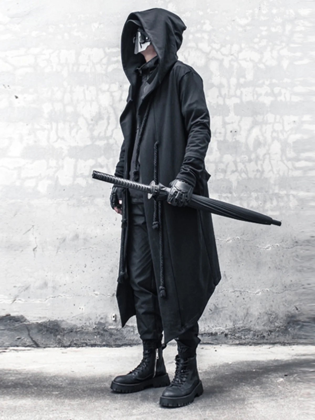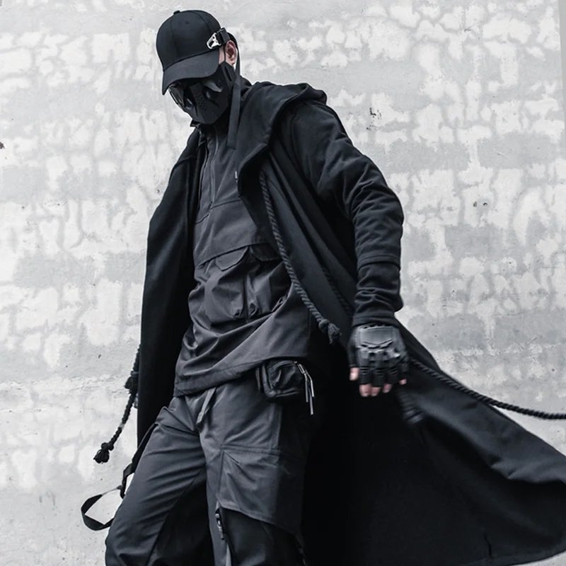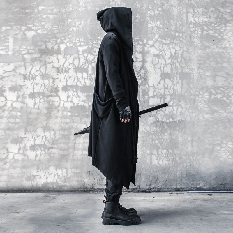 ARENS Men's Tide Spring Autumn Darkwear Warrior Large Size Windbreaker Gothic Style Long Coat Punk Cloak Hooded Wizard
