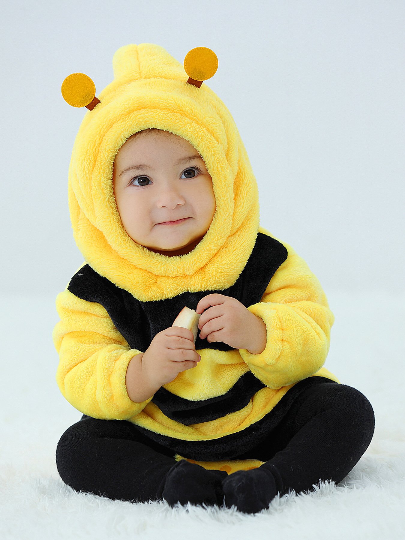 Baby Flannel Comfortable Bee Shape Jumpsuit