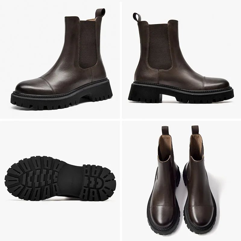 BeauToday Ankle Boots Platform Women Cow Leather Chelsea Boots Round Toe Elastic Band Thick Sole Ladies Shoes Handmade 02379