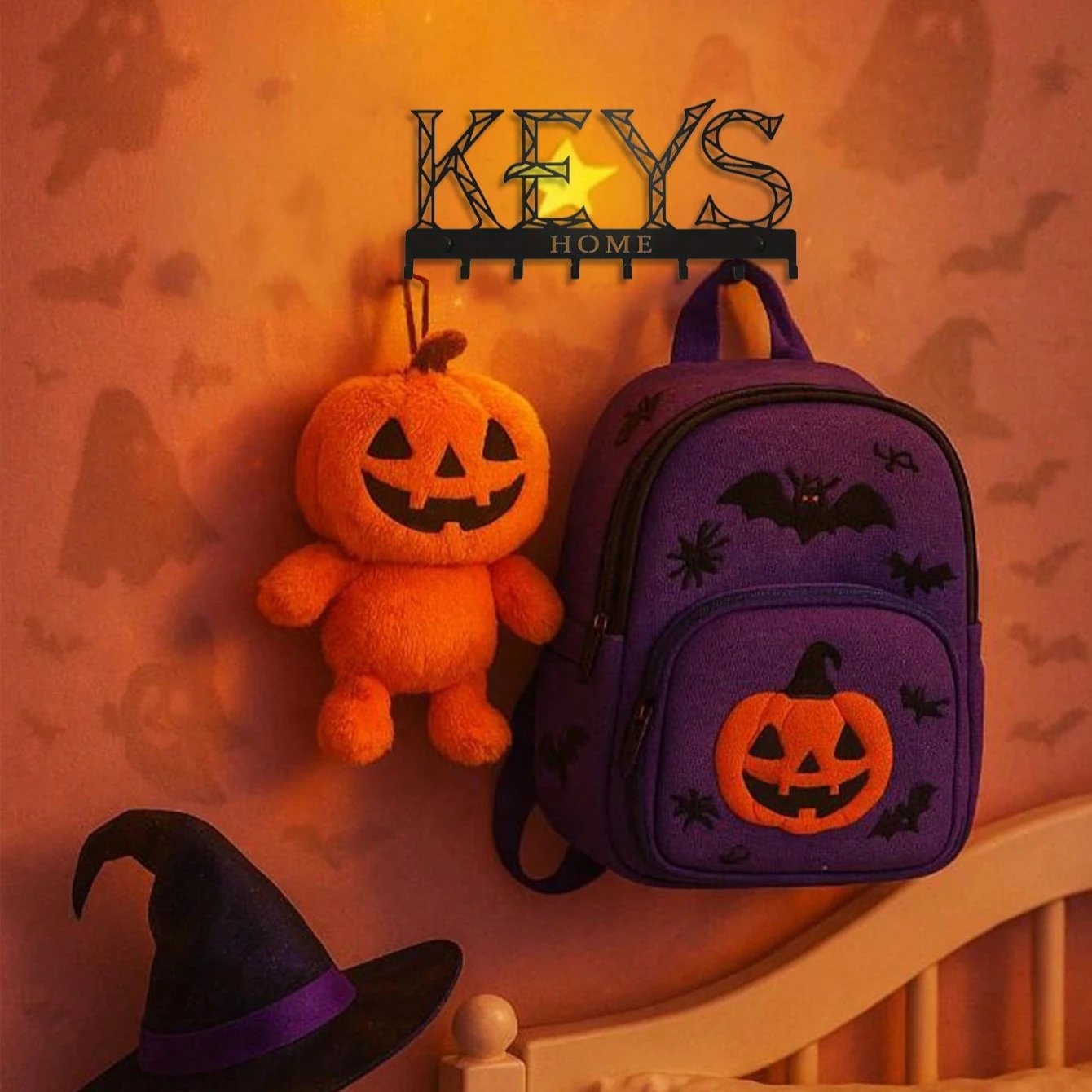 Black Metal Wall Sculpture Hook Organizer – Multi-Purpose Holder – Minimalist Decor – Halloween, Christmas Gift