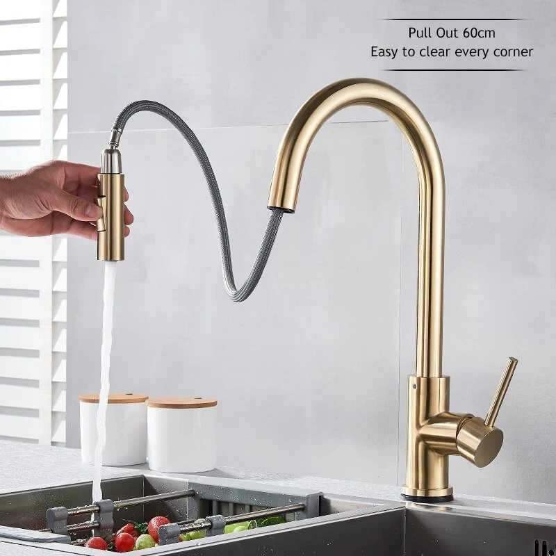Brushed Gold Pull Out Touch Sensor Kitchen Faucet 360 Rotation Smart Kitchen Faucet Sensor Tap Faucet Single Handle Mixer Tap