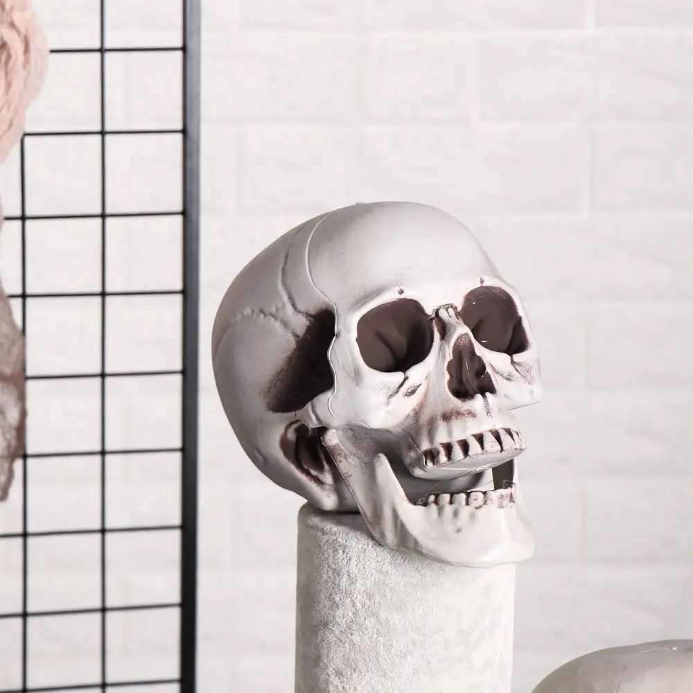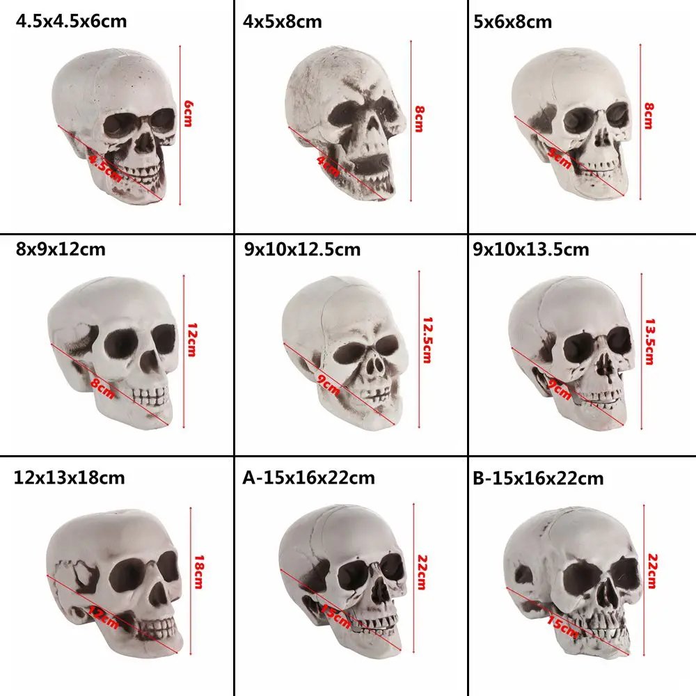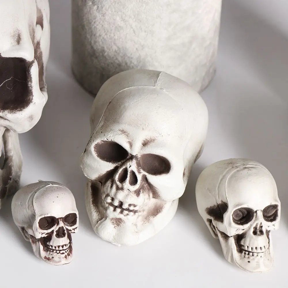 Cabeza de calavera humana de plástico de todos los tamaños, esqueleto, estilo de Halloween, utilería para fotos, estatua de casa encantada de cranios, decoración de fiestas, suministros de juegos