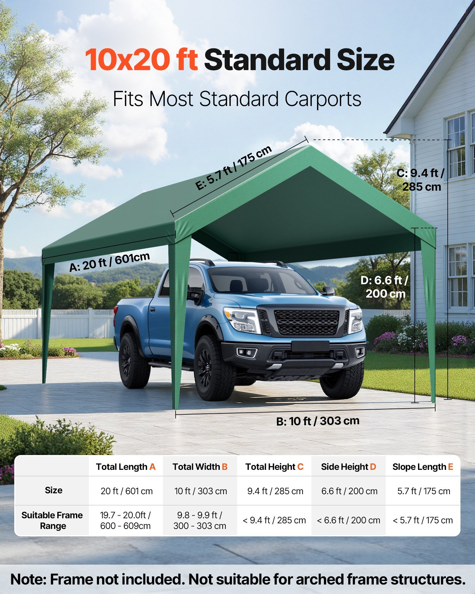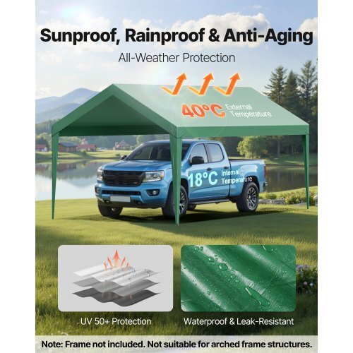 VEVOR Carport Replacement Canopy, 10 x 20 ft Potable Garage TentTop Tarp, UV-Resistant & Waterproof Car Shelter Tarp, Heavy DutyCar Port Cover with Ball Buggees, Dark Green, Frame NotIncluded