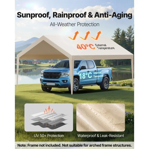 VEVOR Carport Replacement Canopy, 12 x 20 ft Potable Garage TentTop Tarp, UV-Resistant & Waterproof Car Shelter Tarp, Heavy DutyCar Port Cover with Ball Buggees, Beige, Frame Not Included