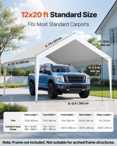 Carport Replacement Canopy Cover Top + Side Wall 10 x 20 ft, Garage Tent Shelter Tarp Heavy-Duty Waterproof & UV Protected, Easy Installation with Ball Bungees,Grey (Frame Not Included)