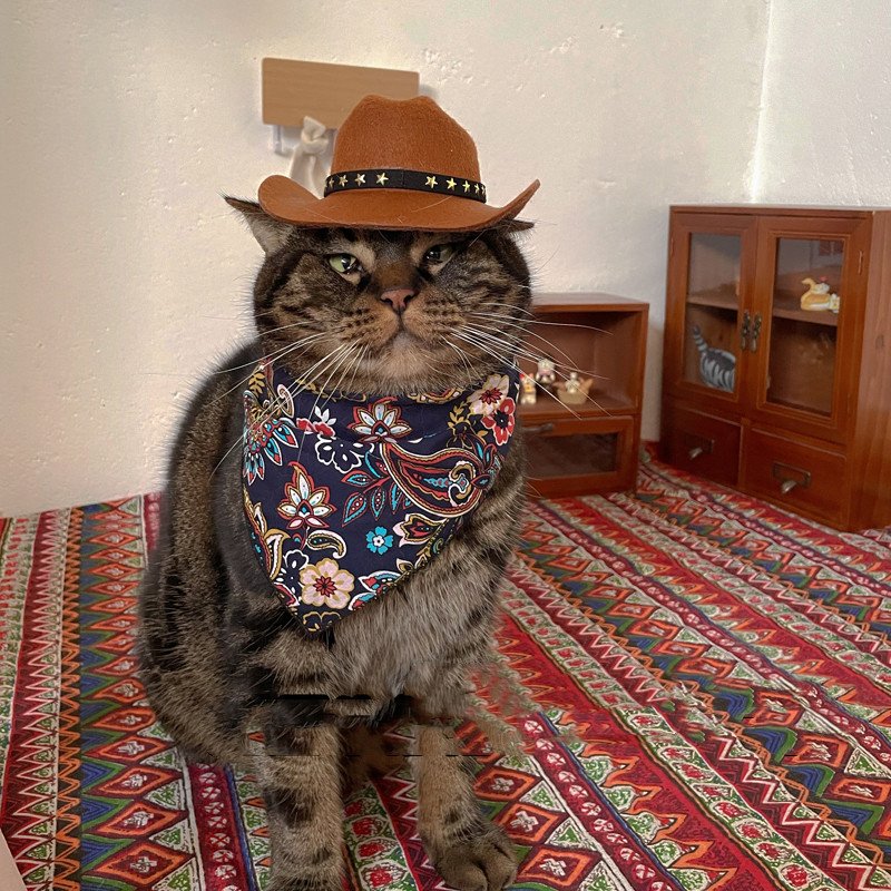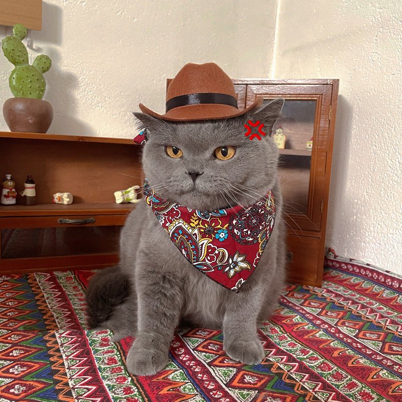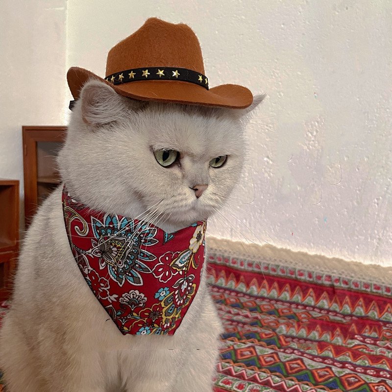 | Color | Brown cowboy hat, Cowboy hat star strap, Navy blue retro triangle scarf, Claret retro triangle scarf, Cowboy hat red triangle scar, Hat navy blue triangle scarf, Star hat red scarf, Star hat navy blue scarf |
