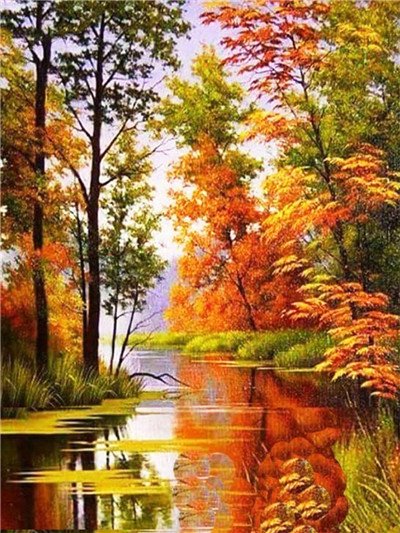 Color: 03style, Painting style: Round-45x60cm, Painting size: – Diamond Painting Full Circle Diamond Landscape Diamond Autumn Landscape