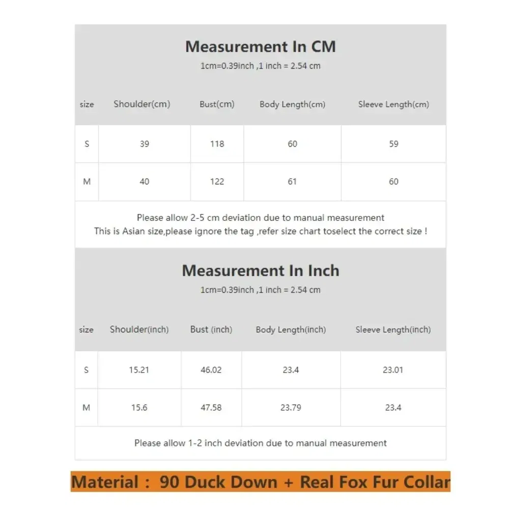 Material :90 Duck Down + Real Fox Fur Collar