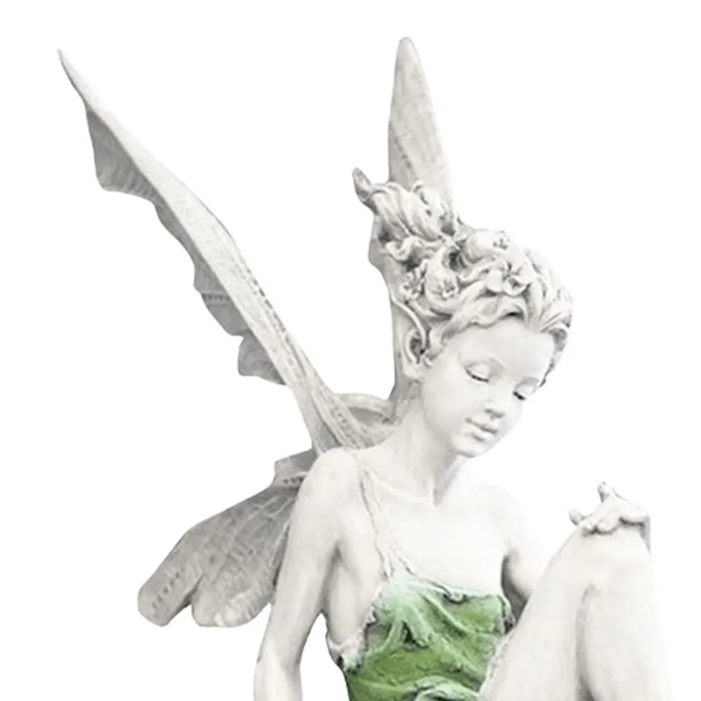 Color: Dark Grey, Ships From: CHINA – Flower Fairy Statue Outdoor Turek Sitting Figurines Decor Figurines Landscaping Girl Sculpture With Wings Resin Craft Yard Decor