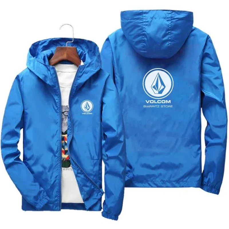 Color: Red, Size: S – Volcom – Men’s and Women’s Printed Jacket, a casual and comfortable windproof jacket with hood and zipper, suitable for couples,