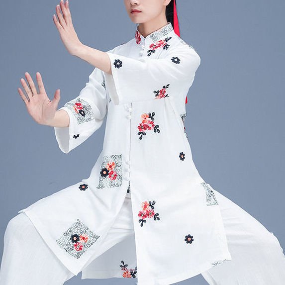 Color: White Top, Size: 2XL – Tai Ji Suit Women’s Chinese Martial Arts Practice Retro Tang Suit Top