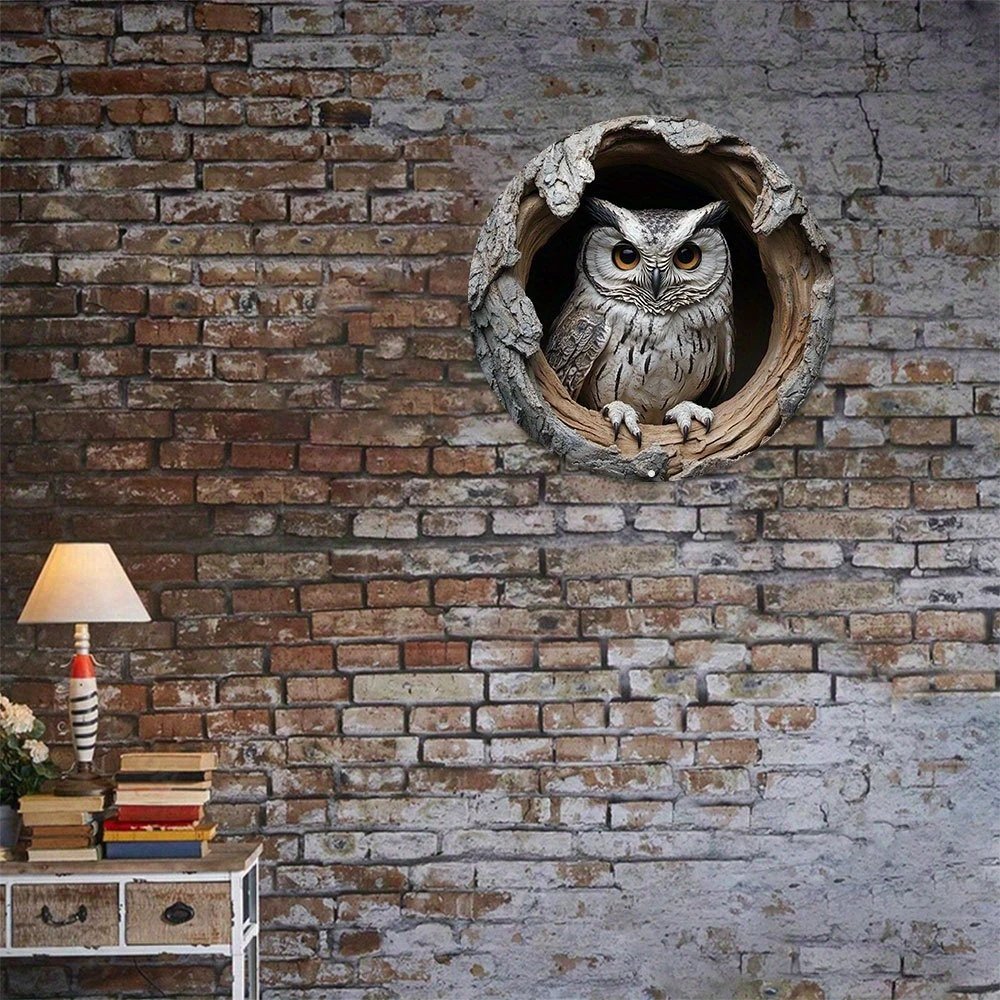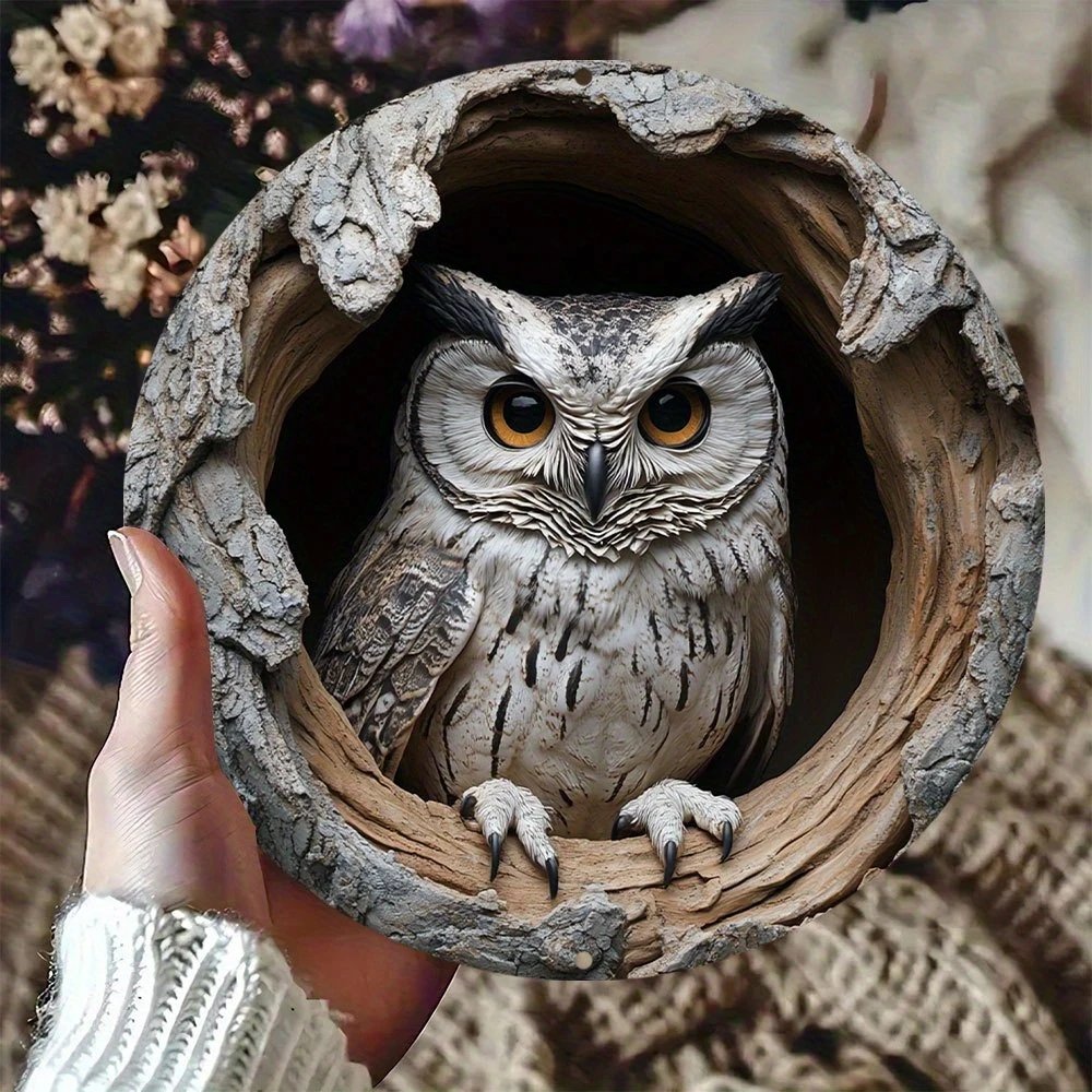 Contemporary Owl Wall Theme Round Wooden Home Kitchen Garden Club Garage Office Wall Decor Ideal Holiday Gift 8 inch