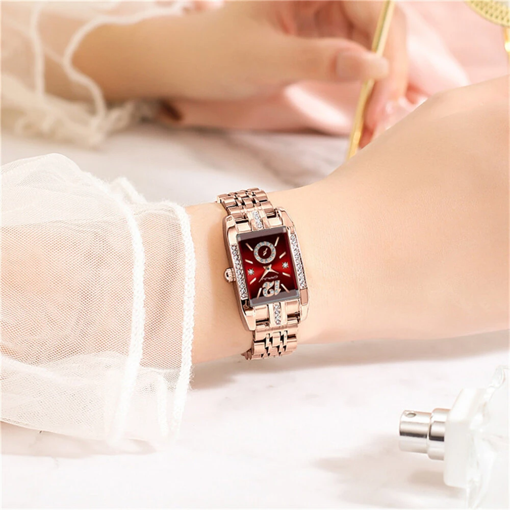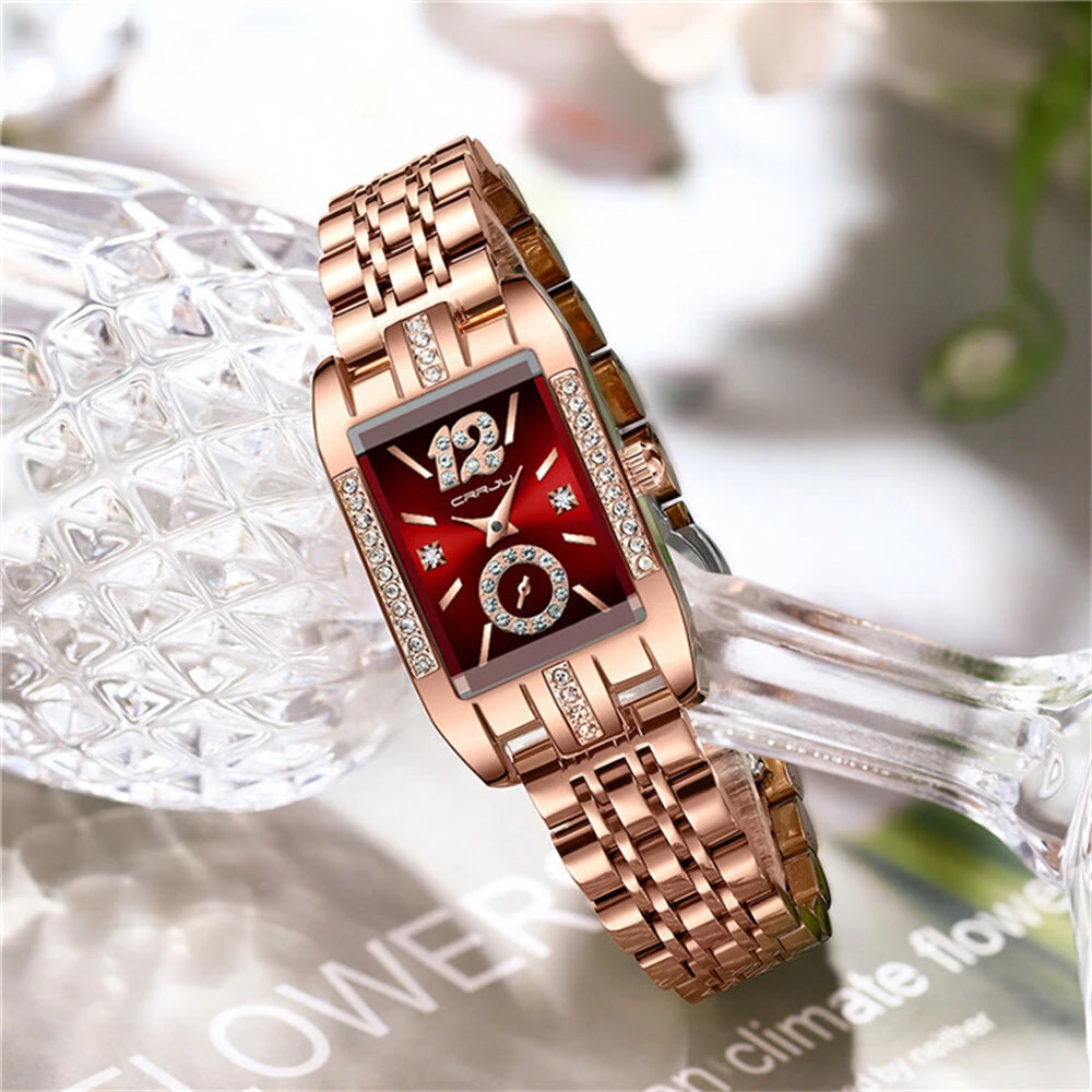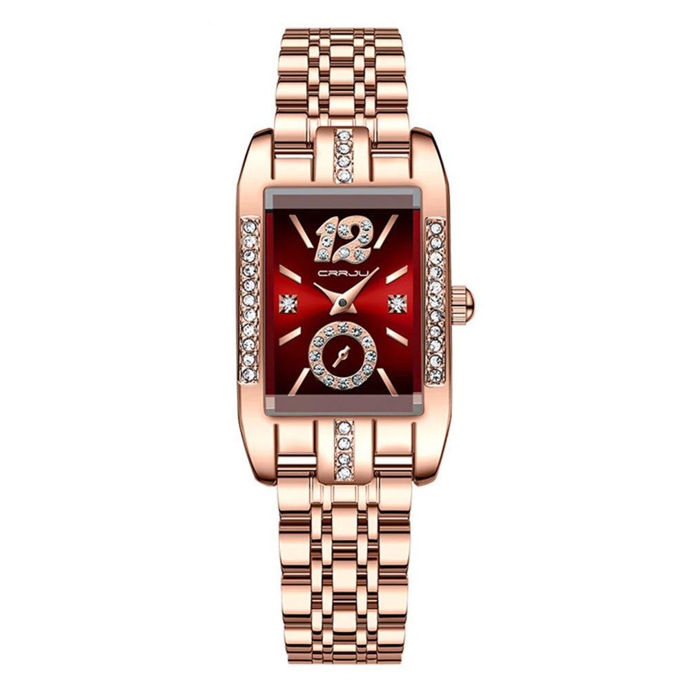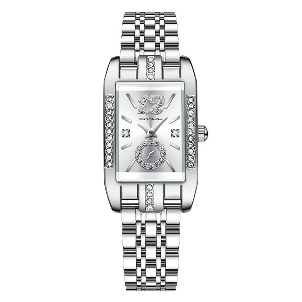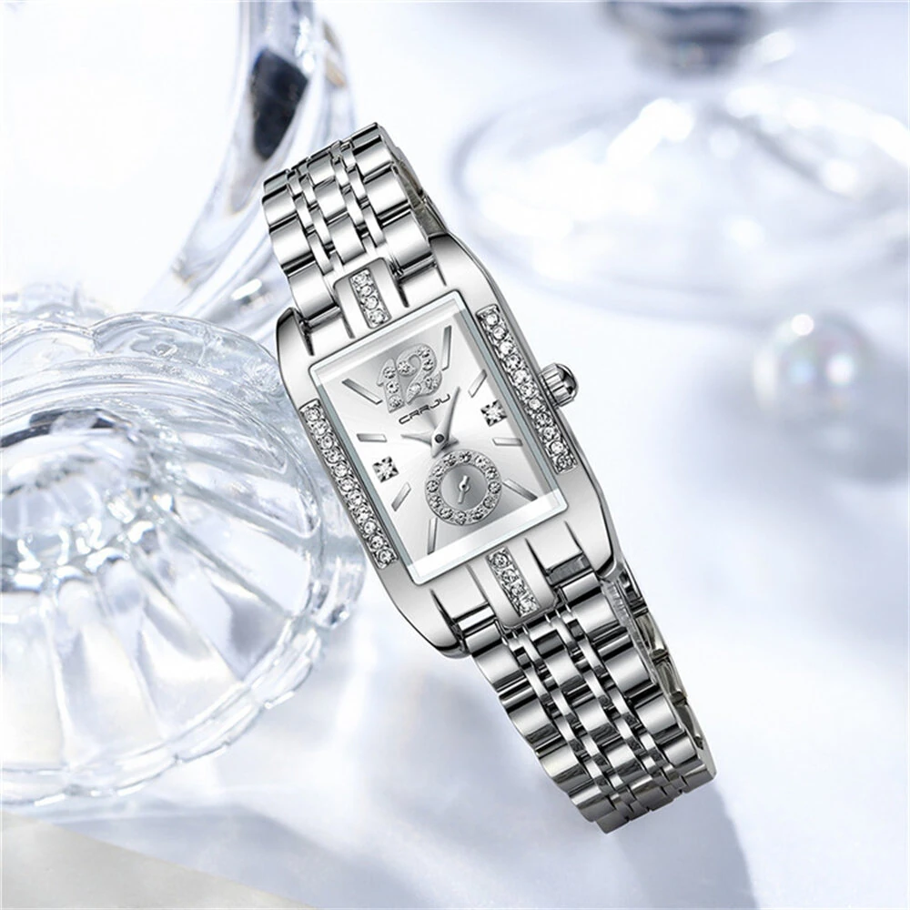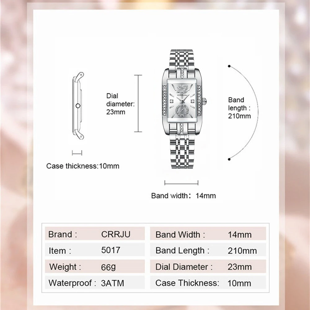 CRRJU Women's Quartz Watch Elegant Rhinestone Rectangular Dial Waterproof Stainless Steel Strap Luminous Design Perfect for Business and Fashion Use Stylish Women Watch Ideal for Everyday Wear