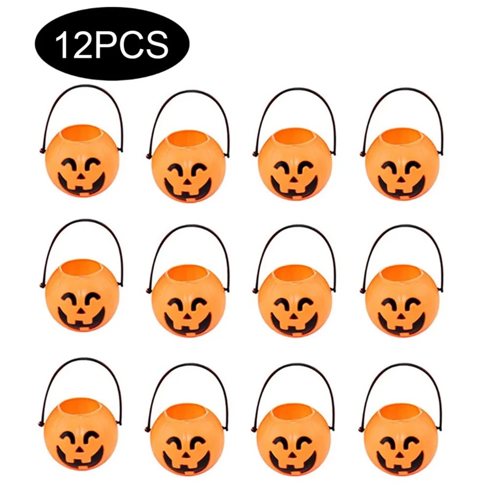 Decoración de caldero de bruja de Halloween, mini caldero de brujas de plástico negro, cubo de golosinas de calabaza, cesta de dulces, truco o trato