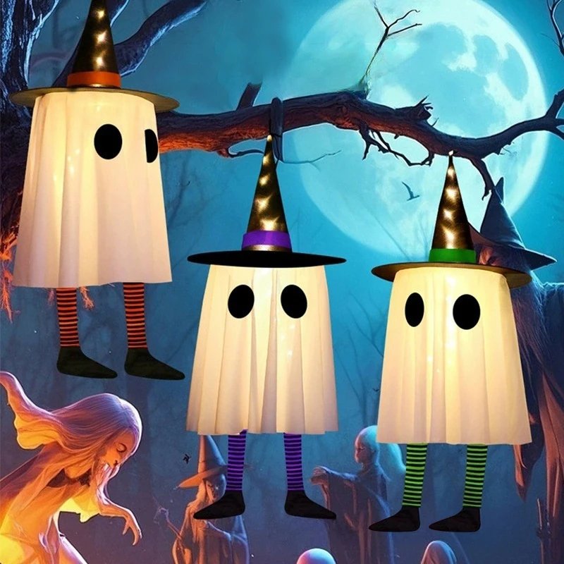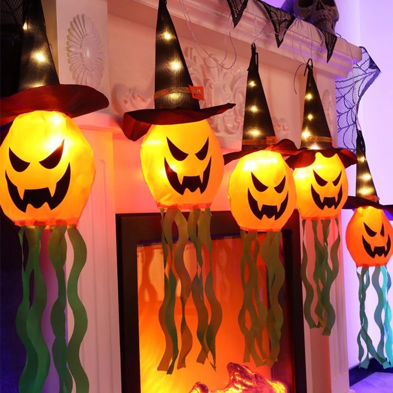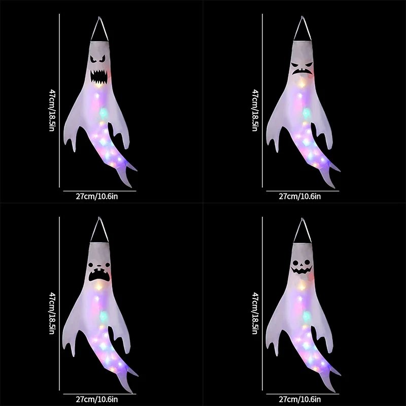 Decoración de Halloween, manga de viento de fantasma aterrador que brilla en los oscuros, regalos de fiesta, banderas colgantes para fiesta, decoración del Día de los muertos