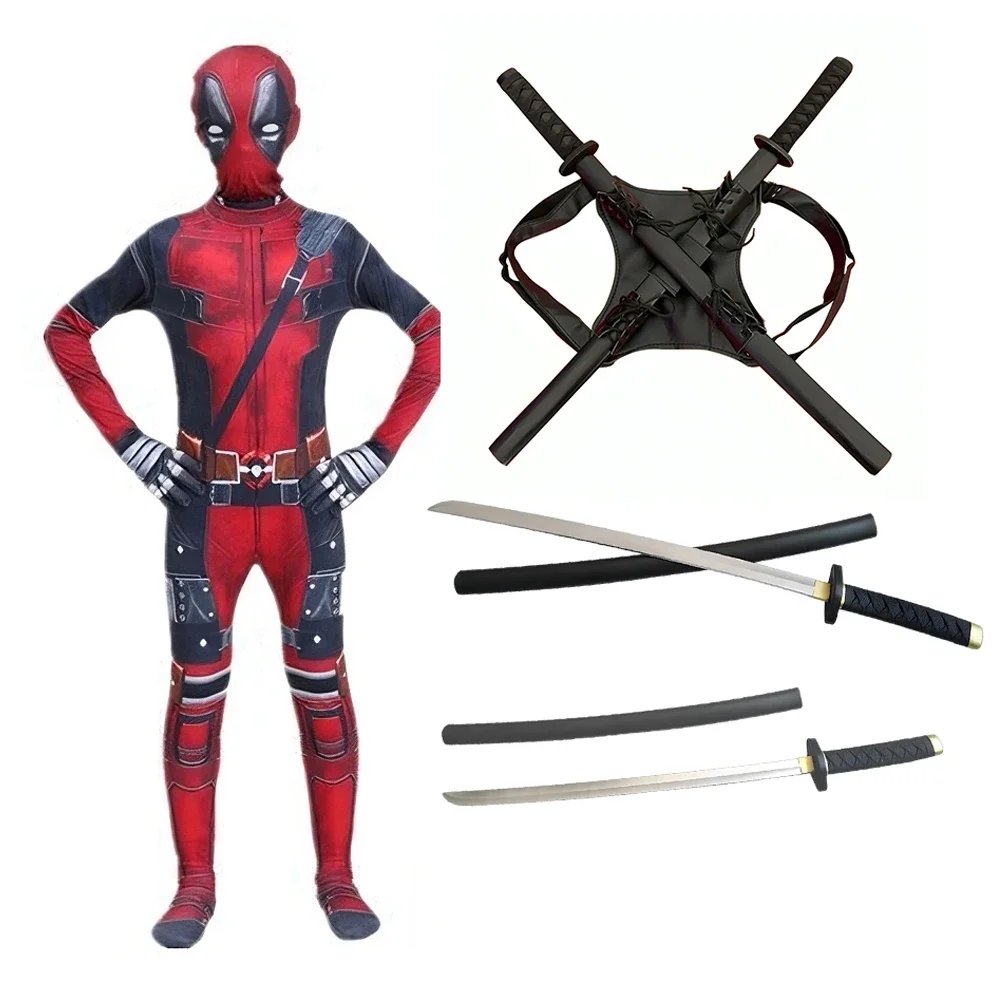 Disfraz de Deadpool para niños, traje con máscara de Cosplay para hombres y niños, mono para niños, traje de superhéroe Deadpool, disfraz de Halloween para niños