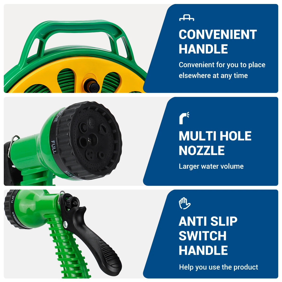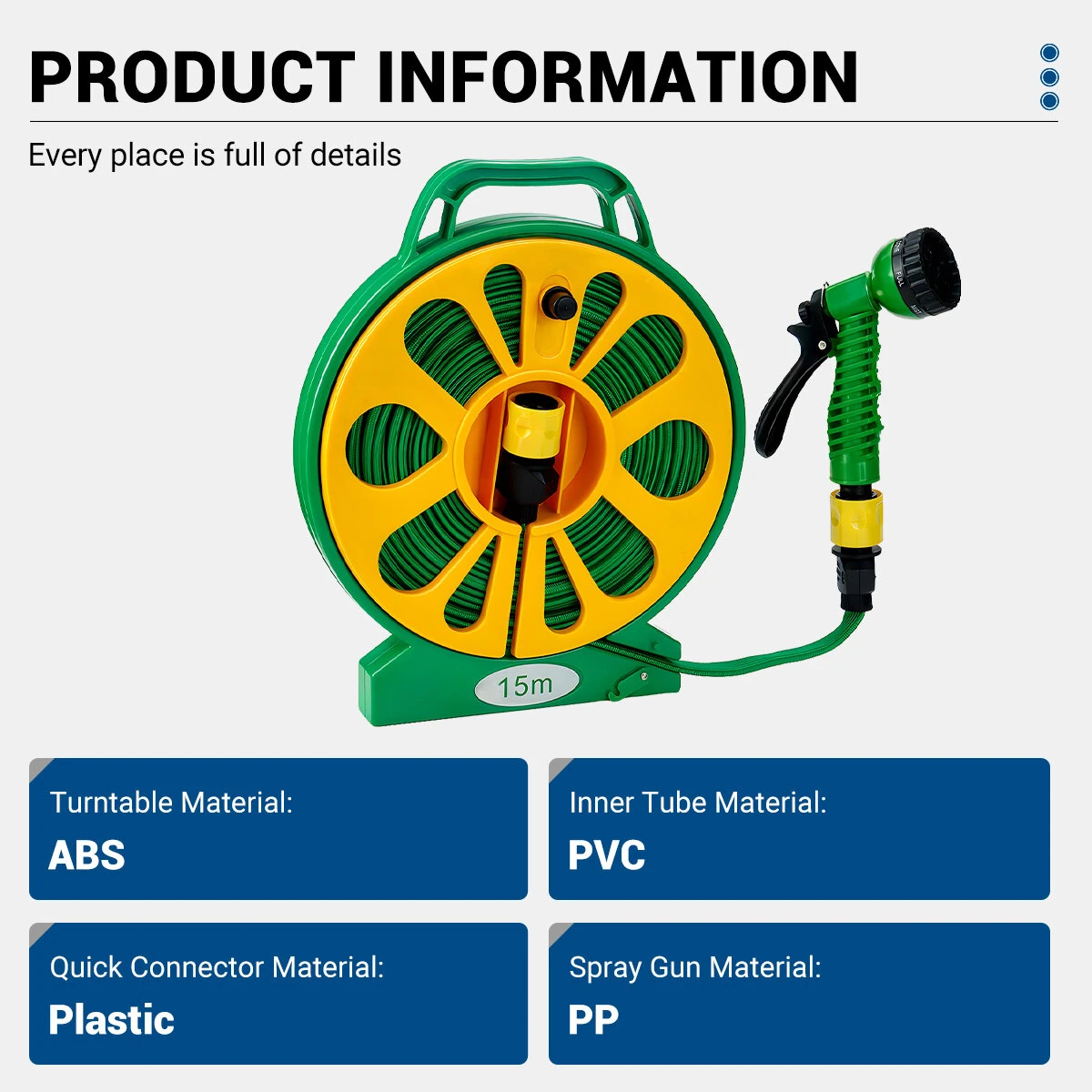Drillpro Water Pipe 15m PVC Hose with 5 Patterns Spray Nozzle for 1/2 Inch or 3/4 Inch Faucets Gardening Cleaning