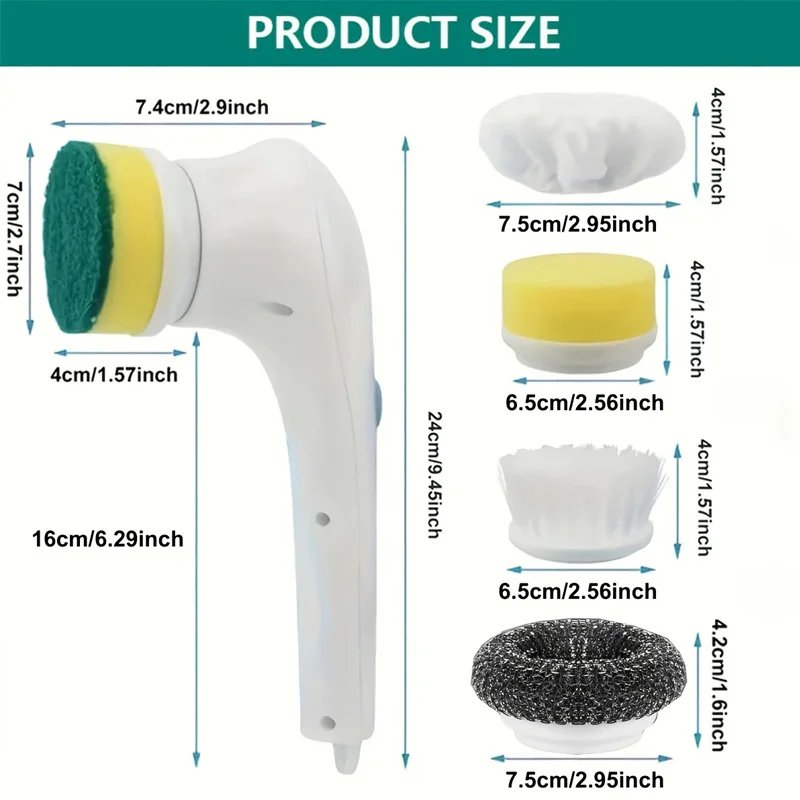 Electric Power Scrubber Kit – Rechargeable Cleaning Brush with Steel Wool Pads for Kitchen, Bath, Grill, Long Handle & Wa