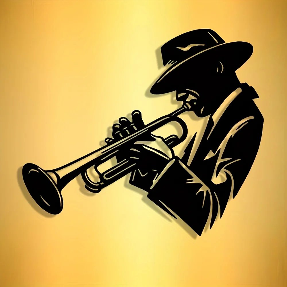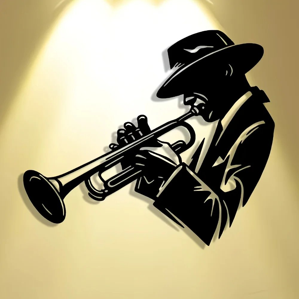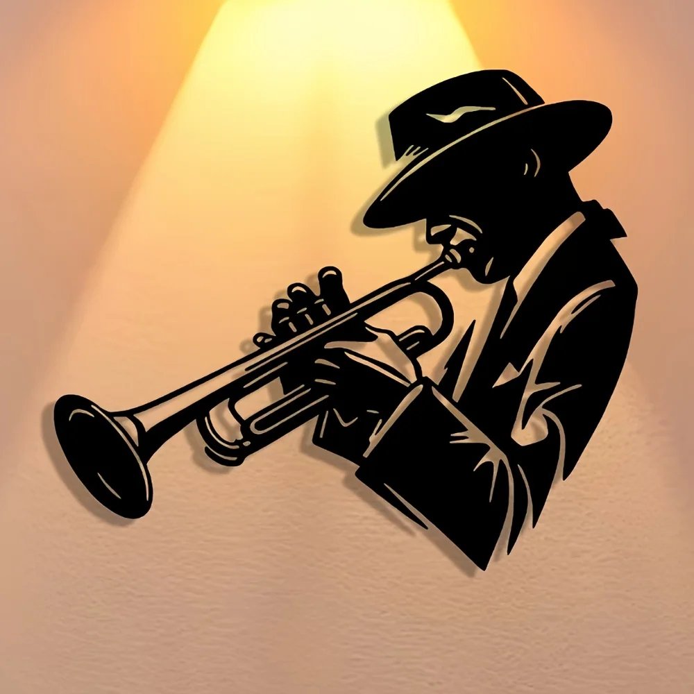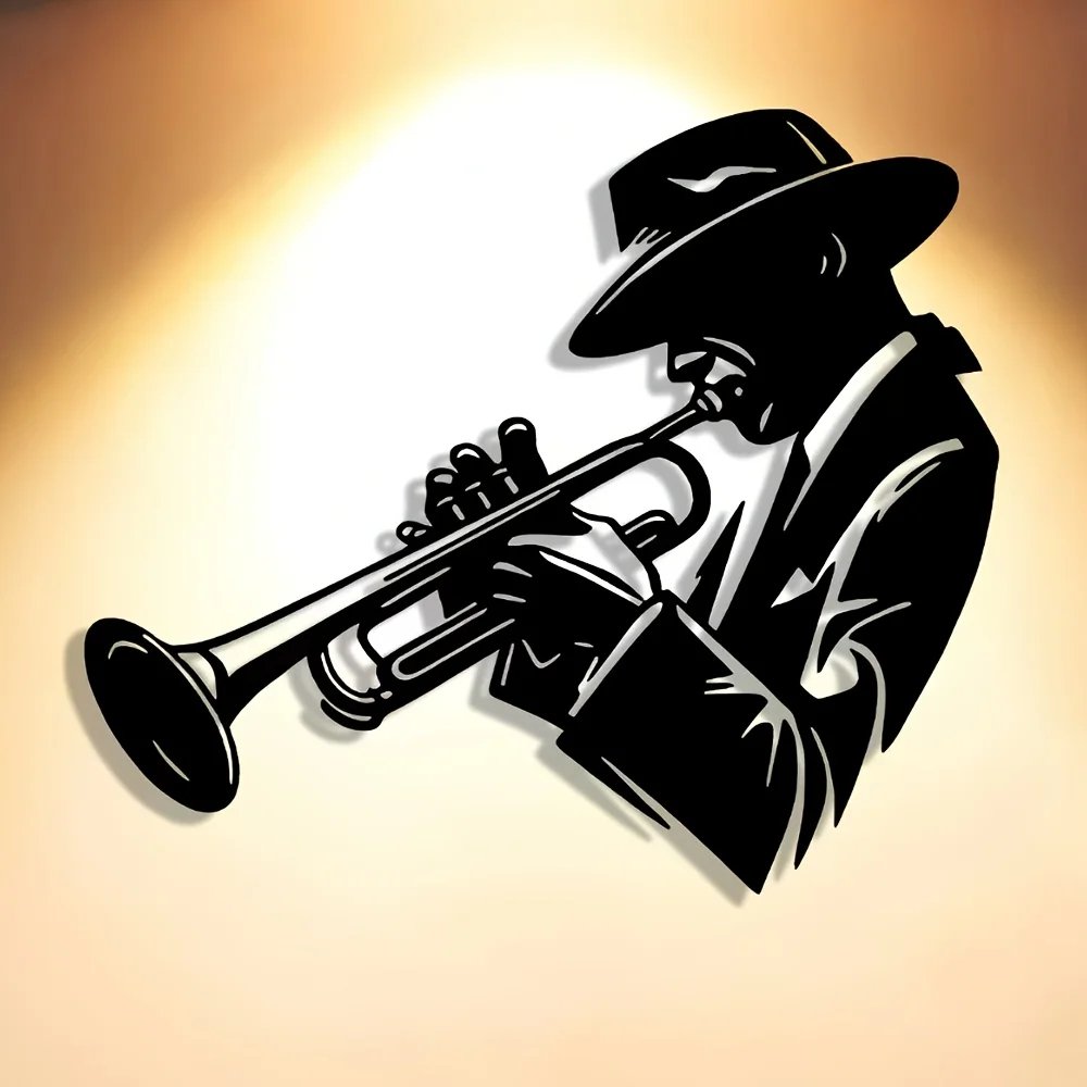 Elegant Abstract Art Trumpet Player Metal Wall Decor – Minimalist Design for Christmas, Large Wall Decor, Perfect for Room Decor