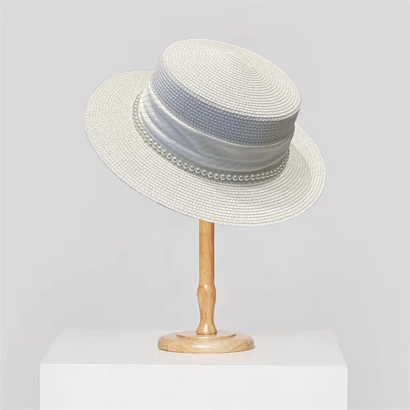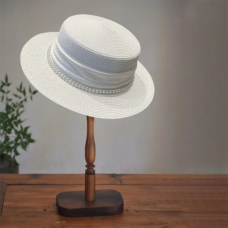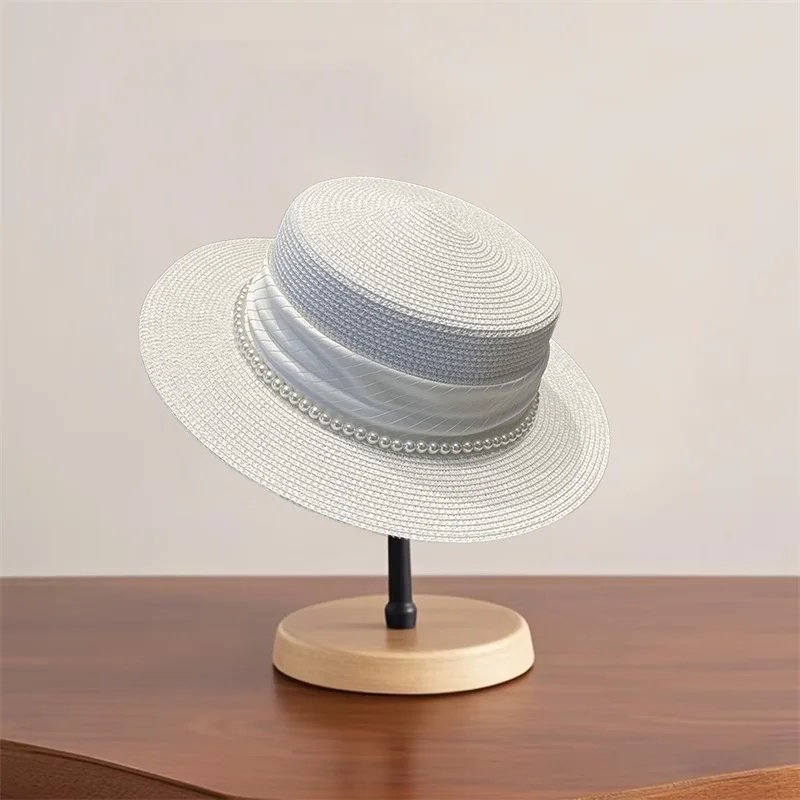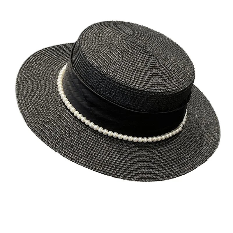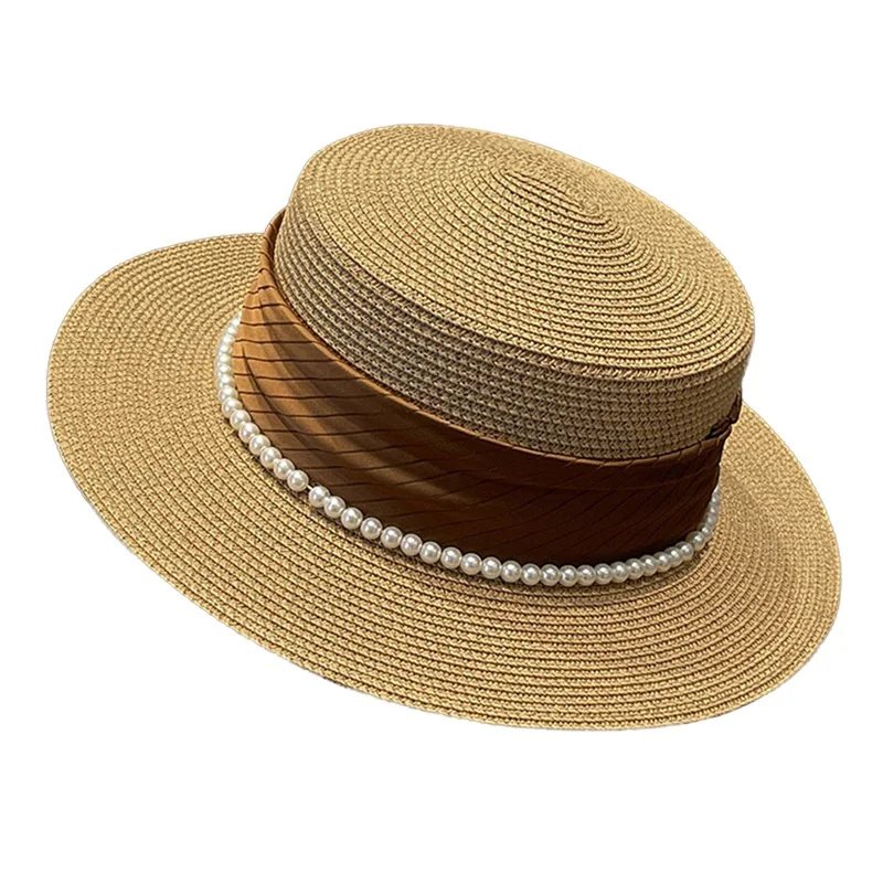 Elegant Women s Wide Brim Straw Hat with Pearl Embellishments for Stylish UV Protection at the Beach or on Holiday