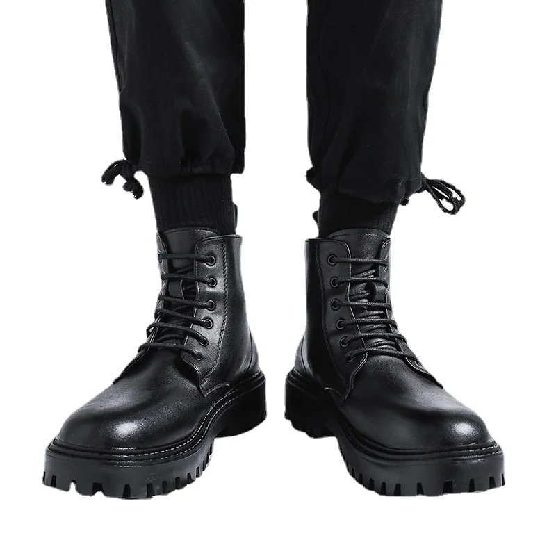 Fashion PU Leather Men Ankle Boots Outdoor Casual Shoes Lightweight Designer Mens Warm Work Boots 2024 Classic Handmade Boots