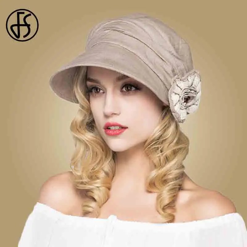 FS Fashion Cotton Summer Hats For Women Beach Sun Hat Flower Beige Blue Wide Brim Floppy Visors Caps Adjustable Chapeu Feminino