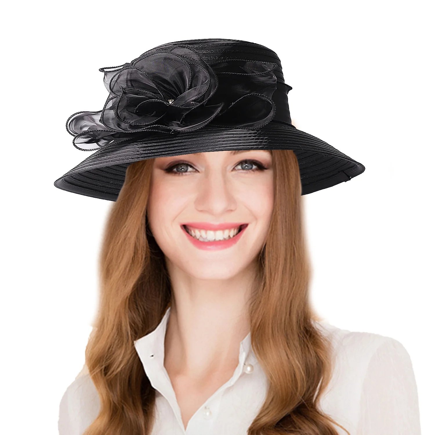 FS Red White Wide Brim Church Hats Summer Fascinators Hat For Women Elegant Sunshade Wedding Bride Cap With Flower Sombrero 2025