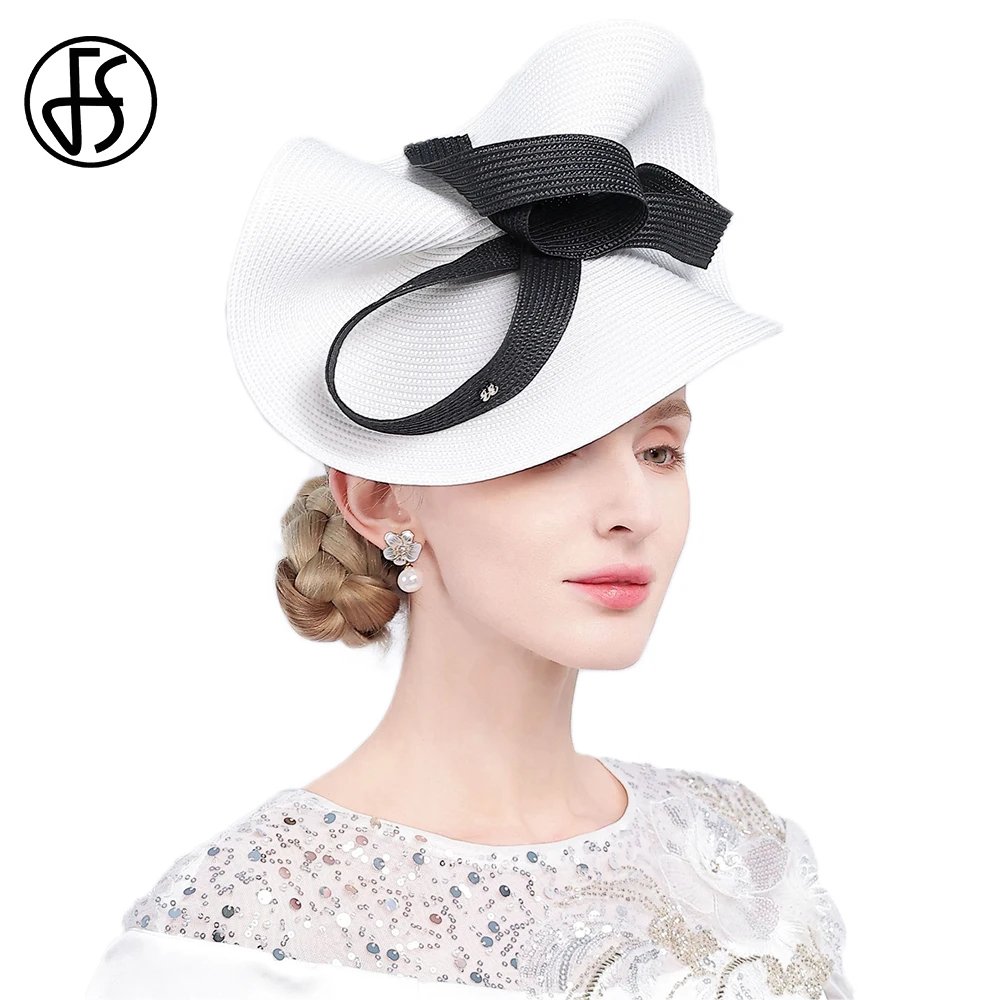 FS Summer Straw Fascinators Hats With Bowknot Black White Church Hat For Women Elegant Tea Party Wedding Cap Chapeau Femme 2025