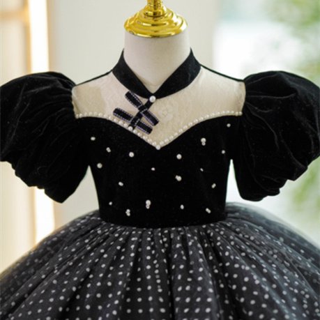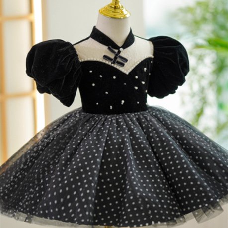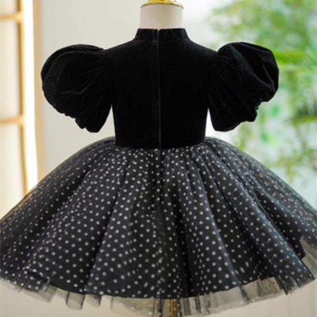 Girl’s Flounced Sleeve Dot Mesh Princess Dress