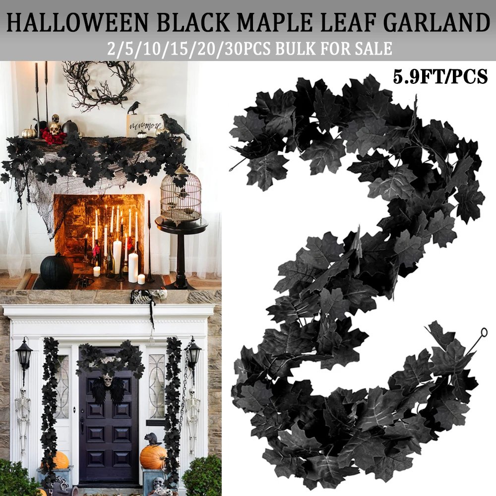 Guirnalda de hojas de arce negras para Halloween, enredaderas artificiales colgantes de otoño a granel para decoración de fiesta en casa, 2-30 Uds.