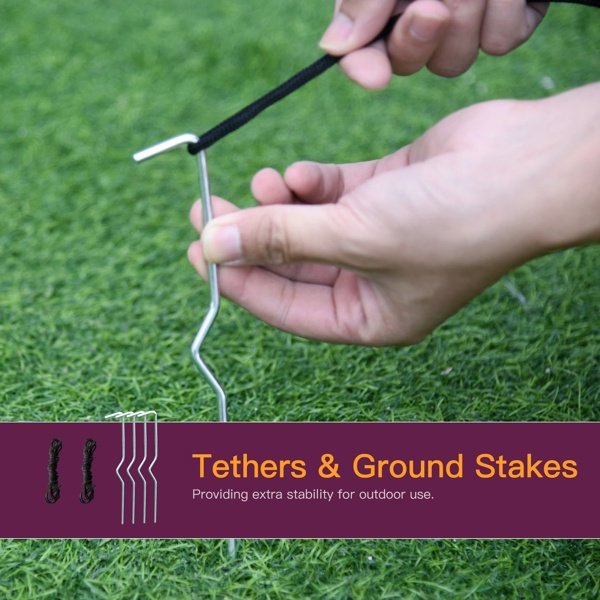 - – Includes four ground stakes and two drawstrings to help keep it anchored on windy nights
