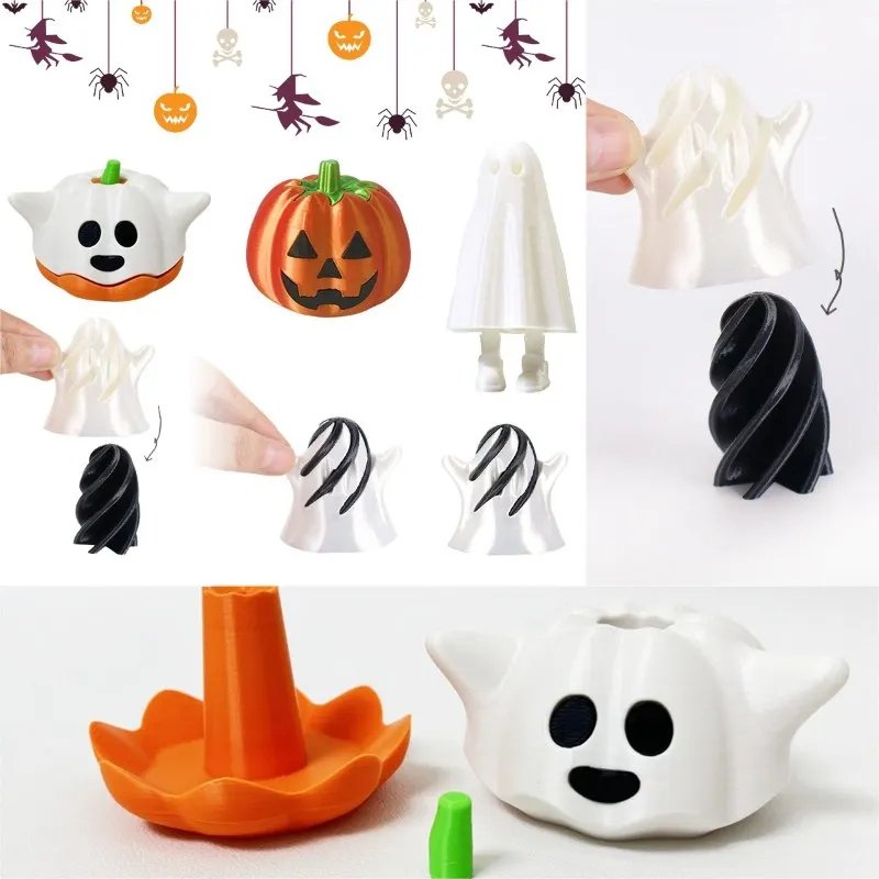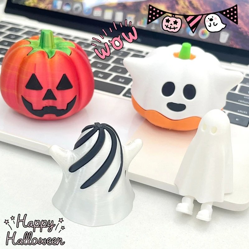 Halloween Ghost Pumpkin Decoration 3D Printed Pumpkin Desktop Ornaments Day Of the Dead Ghost Room Decor Table Accesiories