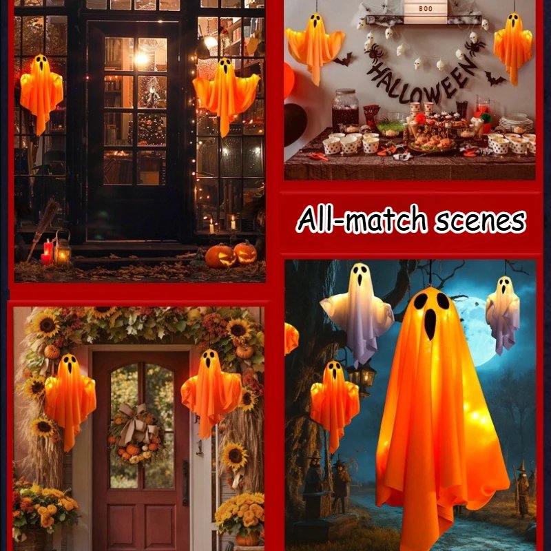 Halloween Glowing Hanging Ghost LED Lights Horror Ghost Decorations Suitable for Home Tree Garden Yard Party Holiday Decorations